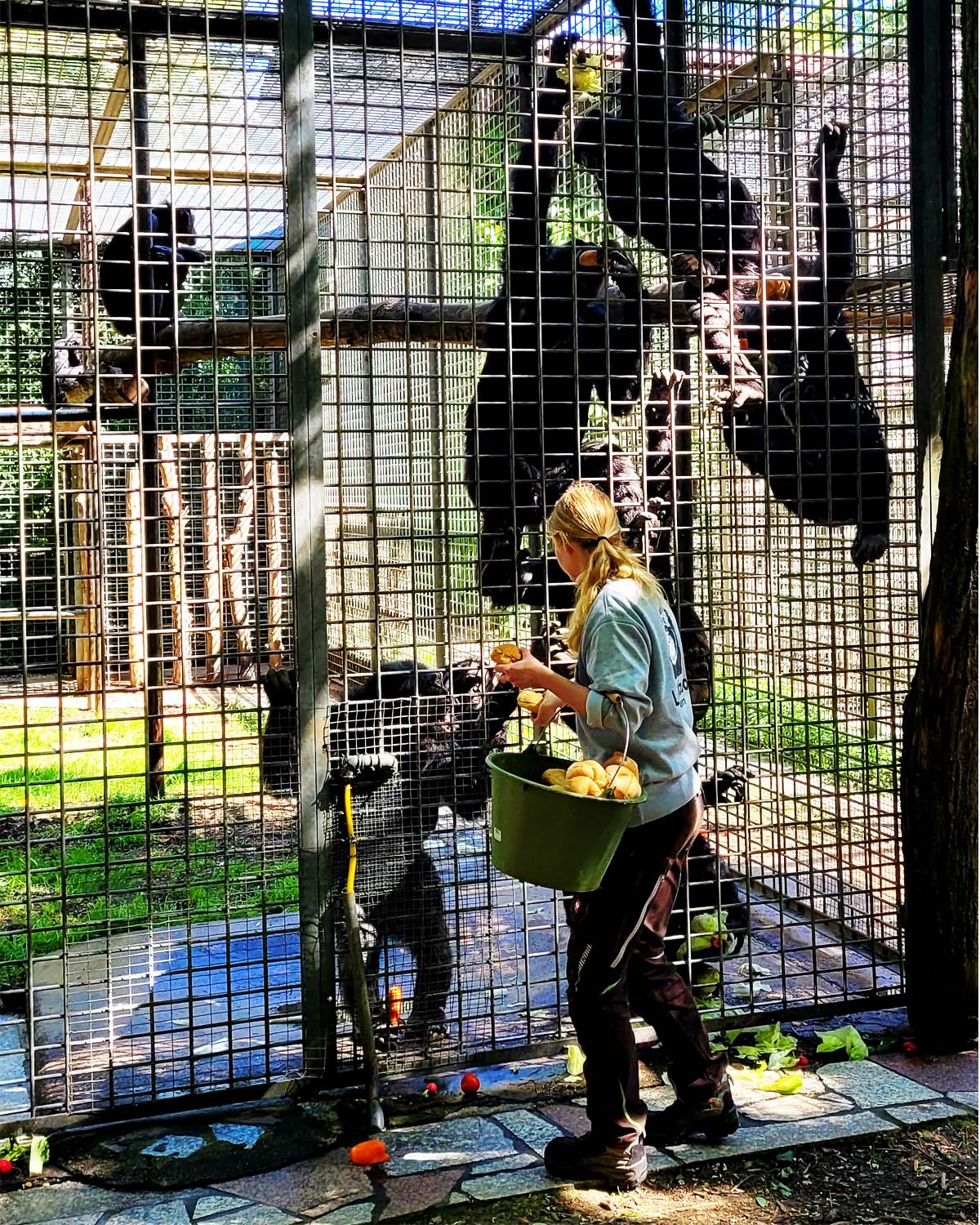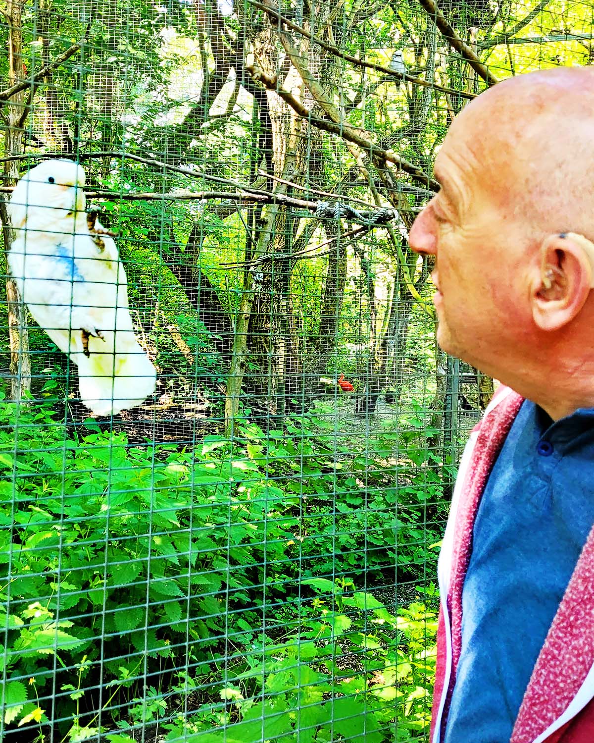 Beim Affengehege kamen wir an, als die Primaten gerade gefüttert wurden – eine spannende Geschichte. Es sah ja fast so aus, als bekommen die Affen belegte Brötchen. Waren es natürlich nicht, aber wir hatten das Glück, dass so wirklich alle Tiere im Gehege nach vorne kamen. Das Vertrauen von Tier zu Mensch und andersrum ist schon toll zu erleben. Auch bei den Papageien-Gehegen kamen die Vögel auch gerne direkt zu uns an den Zaun und es machte den Anschein, als wollten sie sich unterhalten.