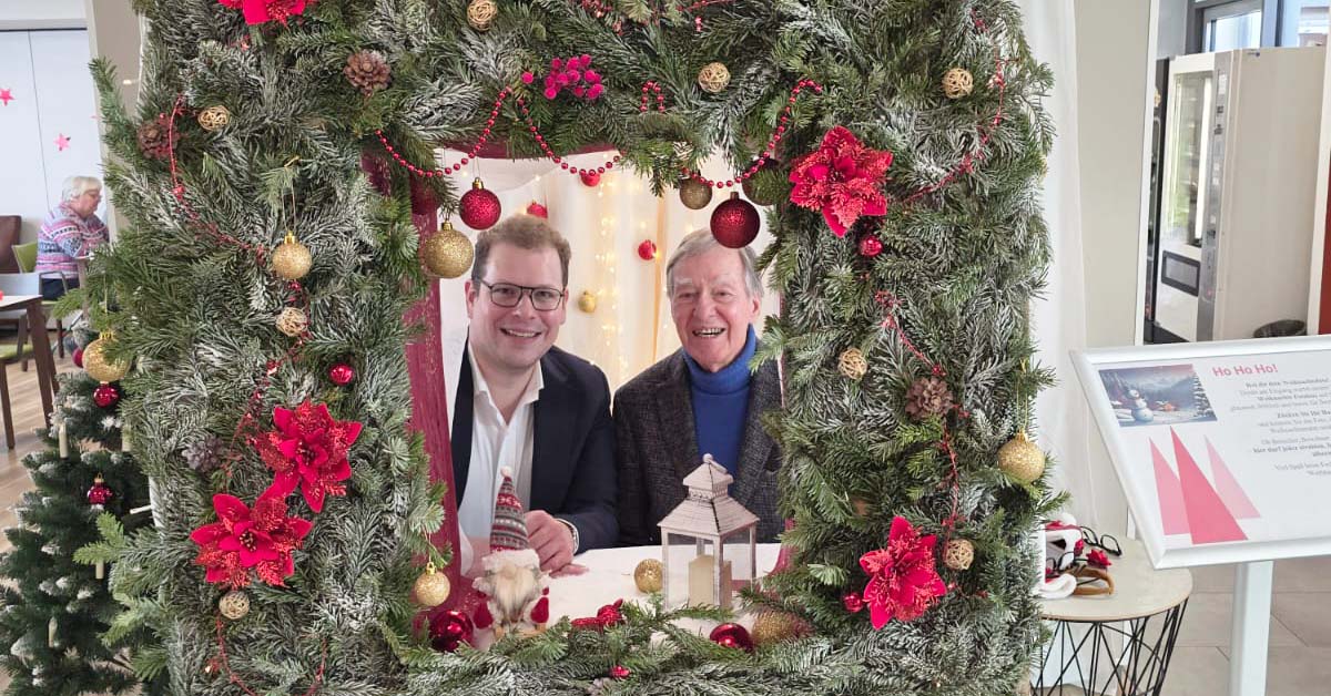 Zusammen verteilten die beiden die süßen Glücksbringer an Bewohner und Mitarbeiter. Hierbei konnte auch das ein oder andere Gespräch in einem lockeren Rahmen geführt werden. Und zum guten Schluss durfte ein witziger Schnappschuss in unserer Fotobox nicht fehlen.