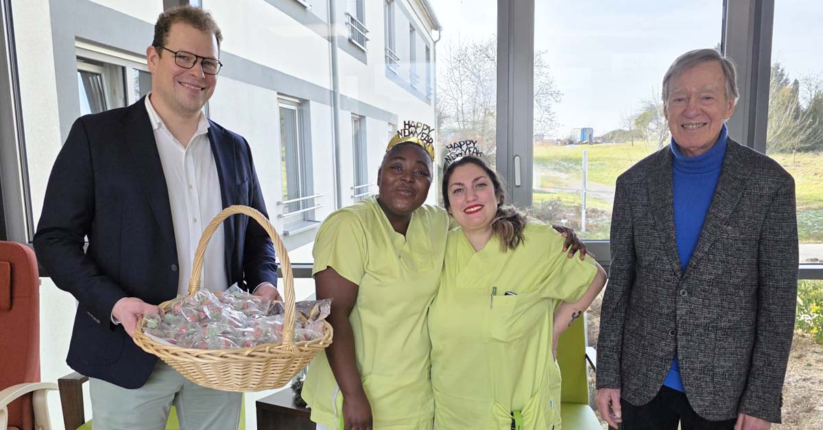 Es ist eine schöne Tradition, dass Hartmut Braun, Vorstandsvorsitzender unserer Stiftung, am Neujahrstag zu einem Besuch in das Haus am Wunnenstein kommt und unseren Bewohnern sowie Mitarbeitern persönliche Grüße, verbunden mit guten Wünschen fürs neue Jahr, überbringt. Das freut uns Jahr für Jahr aufs Neue.